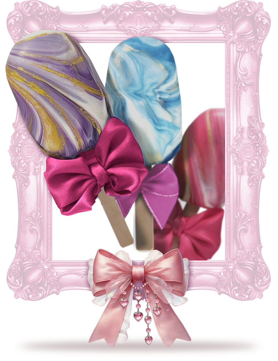 Pamper your tastebuds with our delightful handcrafted Cakesicles, where every bite is a celebration of Rich flavors and artful design. These whimsical treats, are tasty cakes elegantly coated in a luscious chocolate shell. Perfect for any occasion, cake sickles offer a playful twist on a classic dessert, bringing joy and sweetness to your special moments. The special treats are uniquely marbled and accented with silver or gold edible shine.